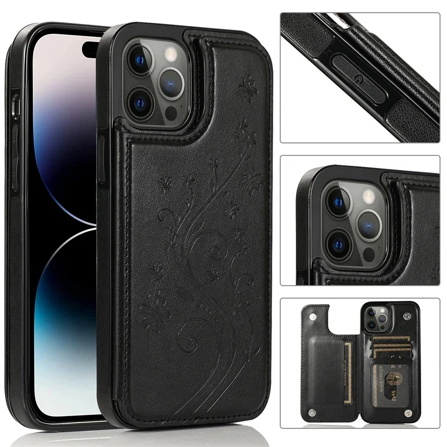 Flip Case For iPhone 11 -16 With Butterfly Embossing – Black