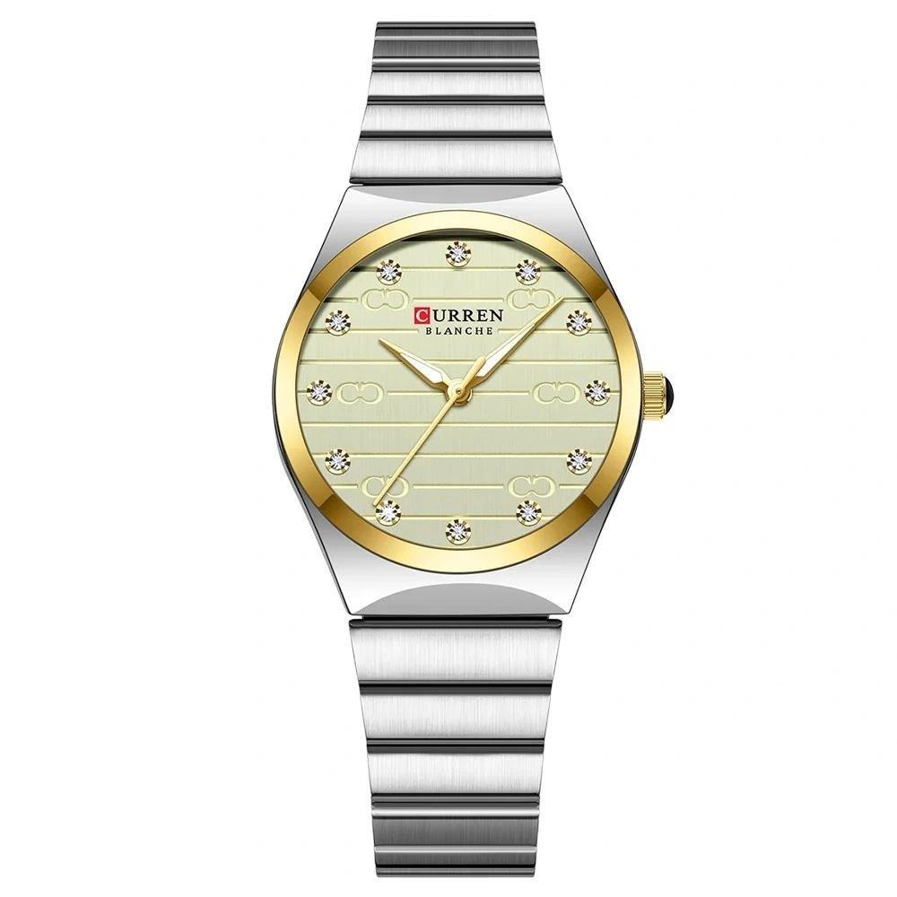 Luxury Stainless Steel Watch With Classic Round Dial For Women By Curren – Silver Yellow