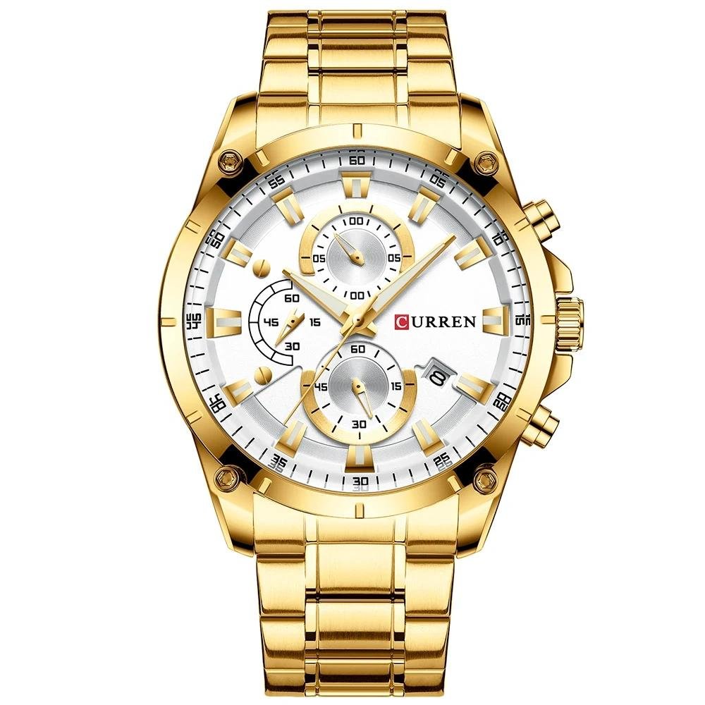 Mens Watch By CURREN With Automatic Date – Gold