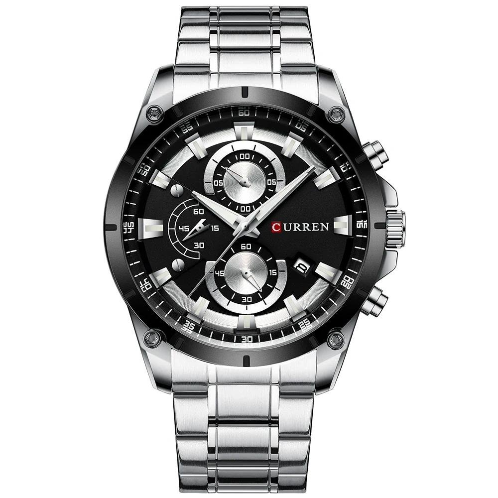 Mens Watch By CURREN With Automatic Date – Silver Black