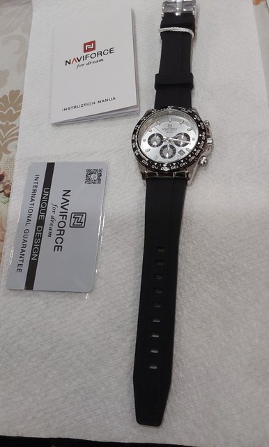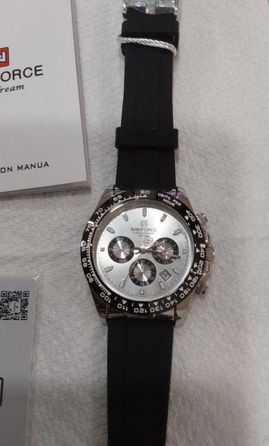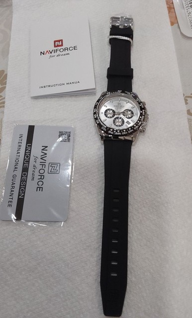 Sport chronograph design.reflective dial looks more expensive. The silicone strap is soft and feels good.this build looks and feels solid.naviforce continues to be a consistent performer.reliable and durable .arrived without box for best cost. Arrived on schedule and we’ll wrapped. Would note the three subdials are highly reflective.these subdials have similar color hands which may not be as clear but honestly how often are these operating and the design is brilliant so works overall .