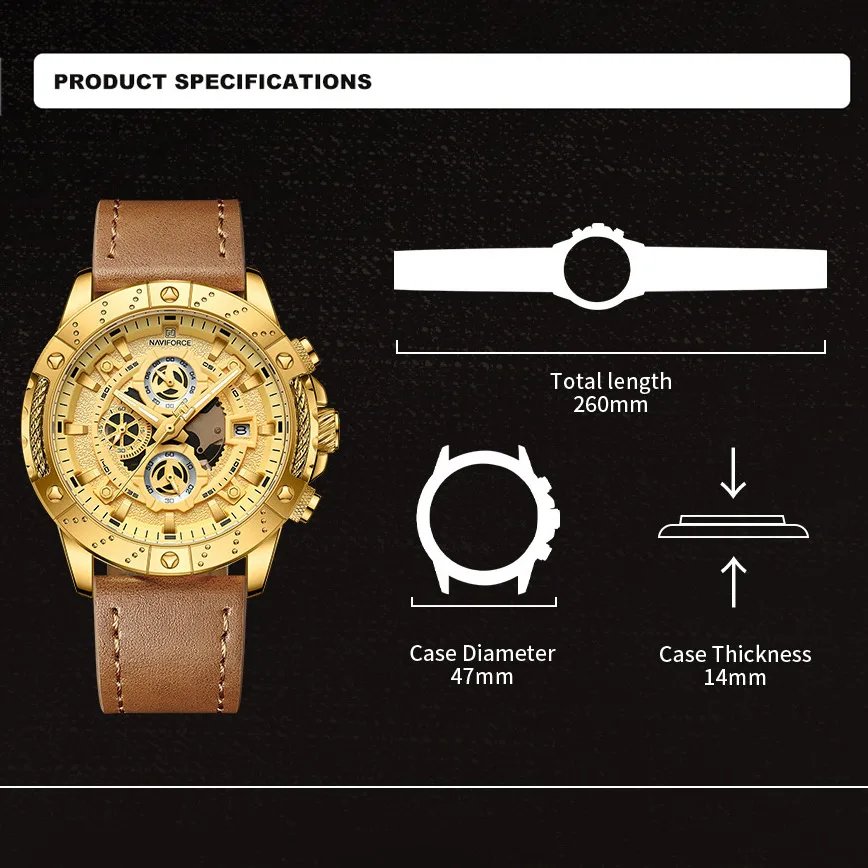 Elevate your everyday style with the NAVIFORCE NF8055 men’s watch. Designed for fashion-forward individuals who crave reliability, this timepiece blends modern aesthetics with practical features for daily wear, sports, and formal occasions.
