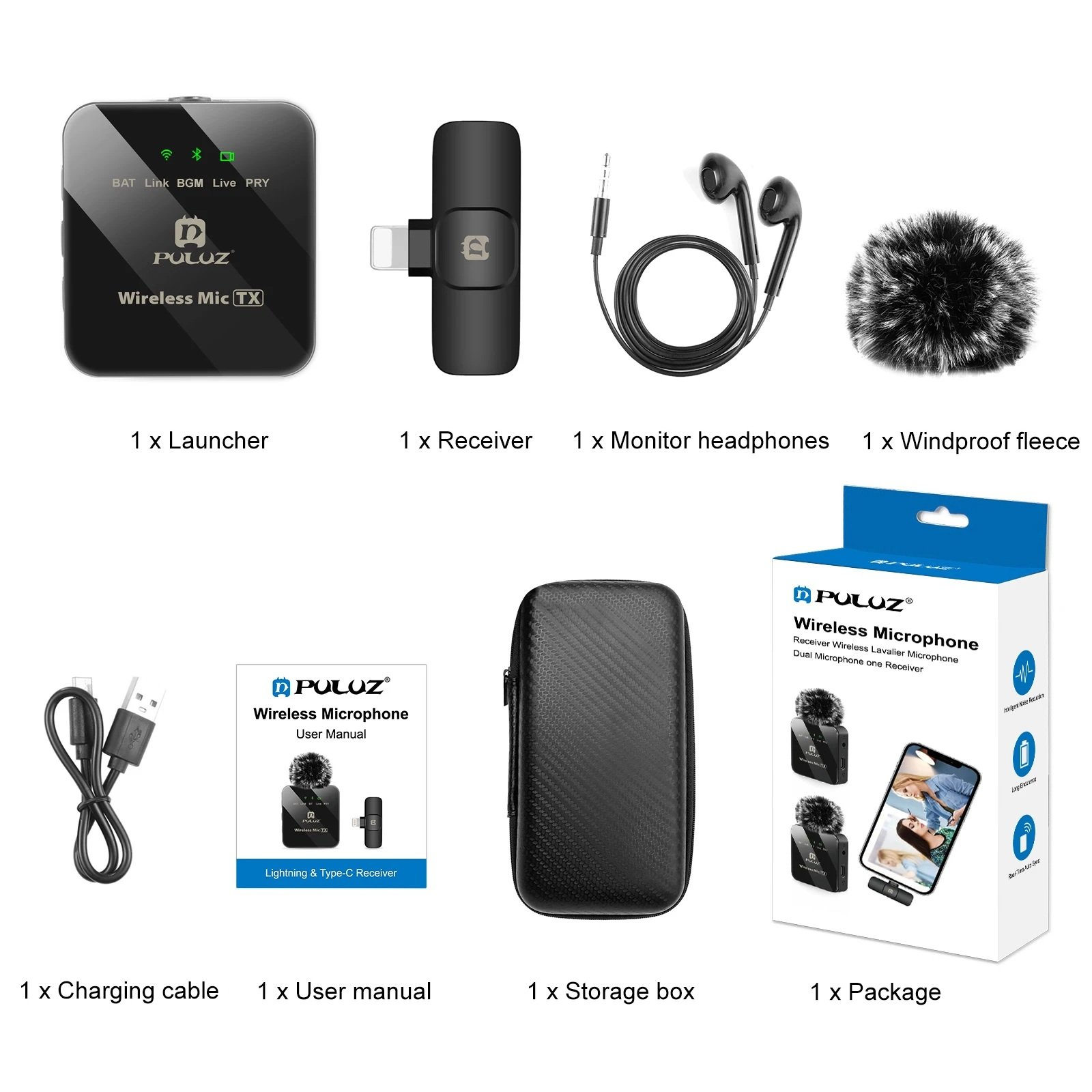 PULUZ Wireless Lavalier Microphone for iPhone / iPad, 8-Pin Receiver – Black – 1pc