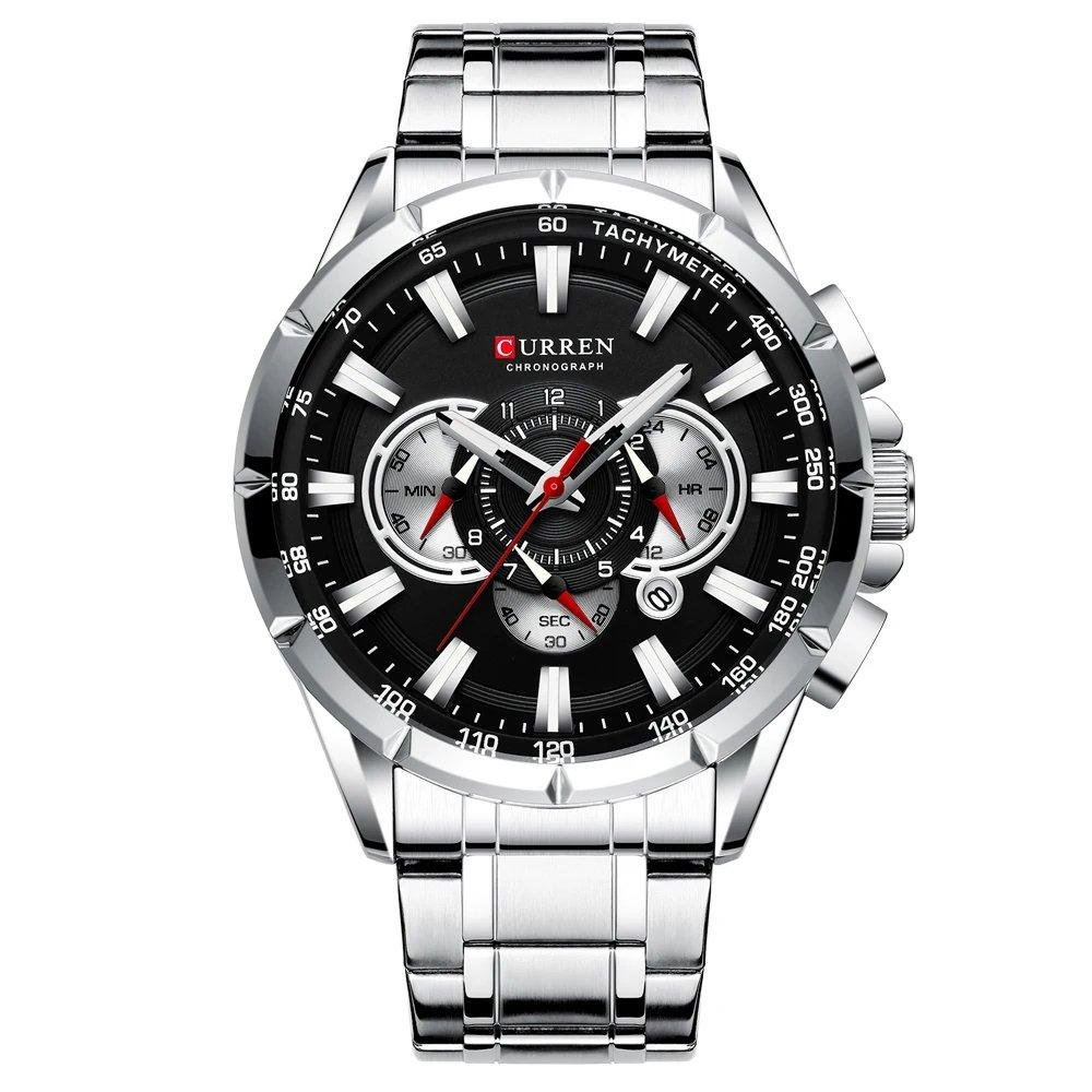 Watch For Men By Curren With Stainless Steel Band – Chronograph – Silver Black